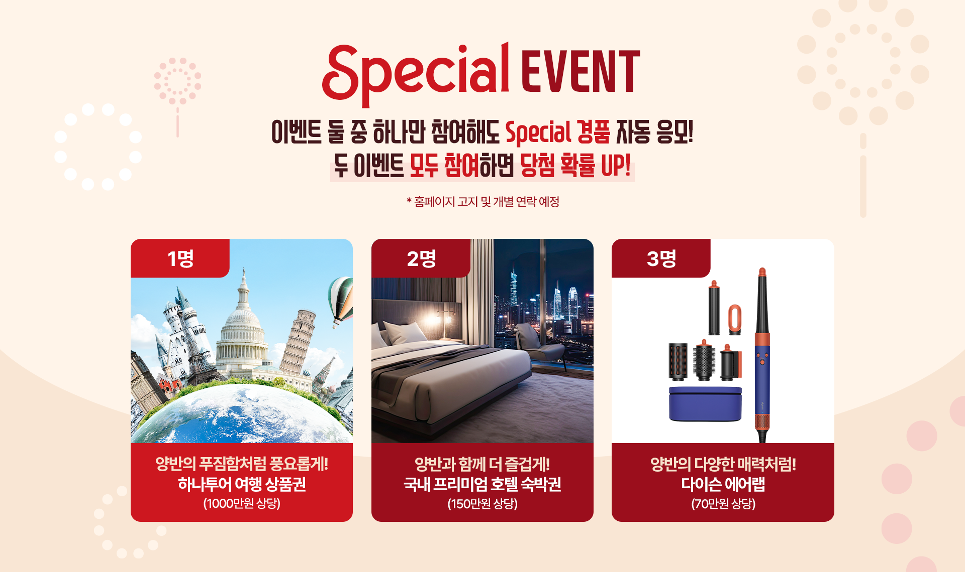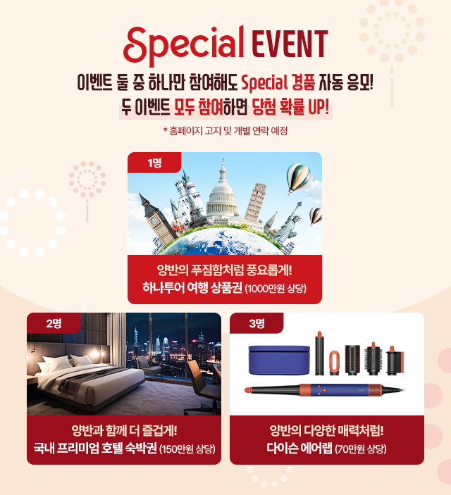 * 이벤트1, 이벤트2 동시 참여자 대상 * 홈페이지 고지 및 개별 연락 예정