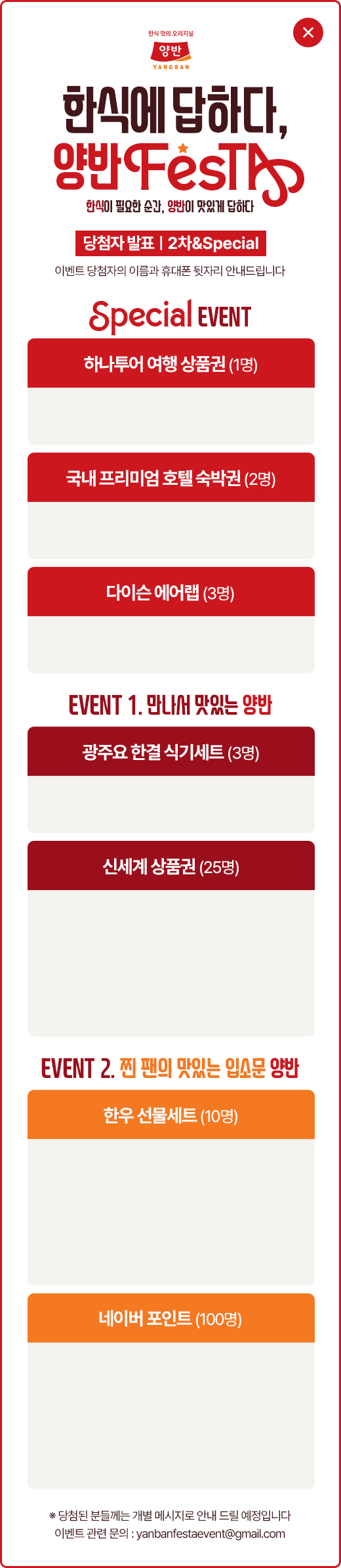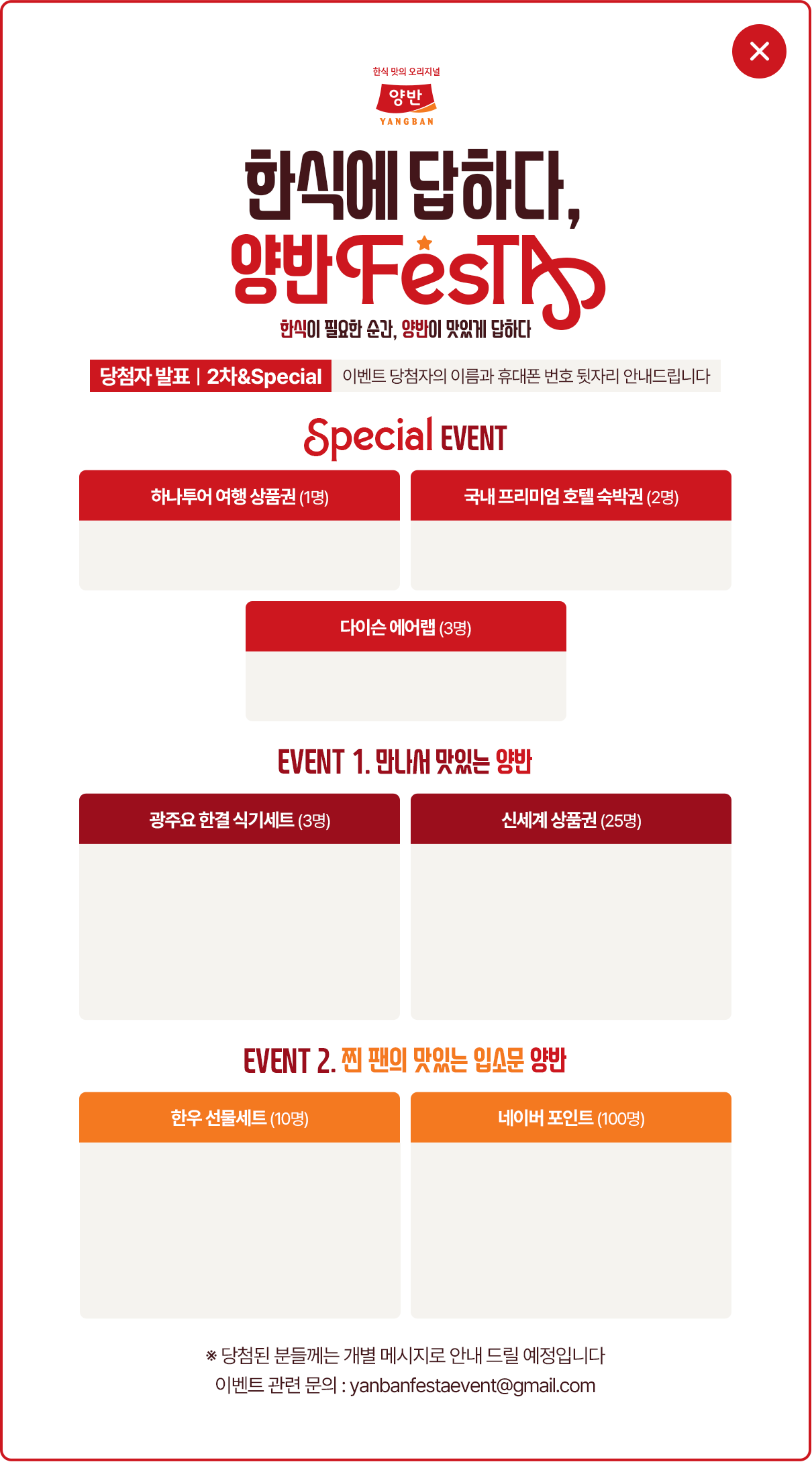 한식 맛의 오리지널 양반FESTA 소식을 널리 알려주세요!